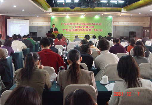 2007年12月7日,由广东商学院流通经济研究所和广东省商业经济学会共同主办,由广东省经济贸易委员会支持的“广东省流通业转型问题”学术研讨会在广州湖滨宾馆举行,来自省内外的110多余专家学者和政府部门、企业实际工作者到会共同探讨了这一问题。
