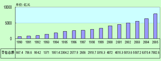 2005年广东省零售业规模持续增长,市场集中度有所提高,但少数连锁零售巨头控制整个零售业中的大量份额。另外,新型零售业态获得市场的热捧,业种结构不断丰富;不少零售企业管理水平得到提高,经营理念获得创新,趋向于复合经营、主题化经营。据中国商业联合会、中华全国商业信息中心按商品销售额拟定的“2005年中国零售企业百强排名”的情况得知,广东省本土零售企业占据13席。