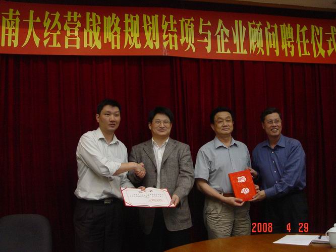 南方大厦集团有限公司李伟武总经理致感谢词。他认为,课题报告-“南方大厦集团有限公司、南方大厦商贸发展有限公司经营战略规划(2008-2010)”贴合实际,揭露了企业的现状,预测了未来,他高度赞扬专家们理论联系实际的科研作风,该课题对加强企业管理,实施3年企业规划有重要的作用。目前,一些规划已在实施中,例如:人力资源方面已经开了好头,最近公司已在招聘新的大学生,为企业补充新鲜血液;商业中心也已经在规划中。他希望这个项目不要到此结束,还要不断跟进,看3年以后,南大的发展情况,课题研究还要延续。希望大家能够共同见证南大由废墟―成立--高峰―低潮―新一轮高潮的历史时刻。根据公司班子的意见,特别要聘广东商学院两位专家为企业的顾问。