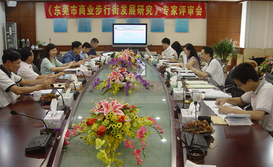 专家评审会在东莞市经济贸易局十七楼会议室举行。参加会议的专家组成员有广东商学院原副院长、广东省商业经济学会会长徐印州教授;广东工业大学经济管理学院副院长张德鹏教授、广州市商道咨询有限公司总经理李志坚、东莞理工大学莫安达教授、东莞市莞城经贸办主任梁宇超、东莞南城富民商业步行街副总经理胡永信、东莞零售协会副秘书长李茵。参加会议的课题组成员有东莞市经济贸易局叶葆华副局长等十人。评审会由东莞市经贸局贸易流通科刘锦棠科长主持。评审专家组由徐印州教授任组长。