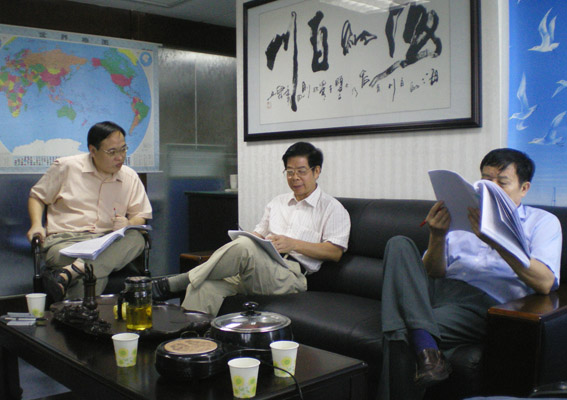 2008年5月22日上午,《广东省志国内贸易卷》 编审委员会在国信大厦广东省石油行业协会办公室召开了《广东省志国内贸易卷<商业篇>》中期成果评审会。 到会的《广东省志国内贸易卷》编审委员会委员有:广东省地方史志办公室侯月祥副巡视员、省政府发展研究中心潘叙迭副巡视员、广东省石油行业协会陈顺遂会长、省志编审处王涛副处长、商业志办公室关永强等专家。参加评审会的还有广东商学院流通经济研究所所长王先庆教授、兼职研究员晏宗新教授等。各位编委对王先庆教授主持编写的《广东省志国内贸易卷<商业篇>》史志(第5稿)进行评审,肯定了课题组能按要求组织志书编写,史实较详细,要点突出,具有连续性和可查性;并就框架结构、内容定位、概念统一、史料来源等方面提出了中肯的修改建议。