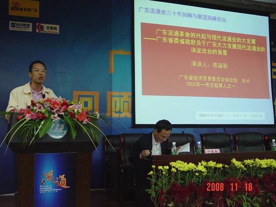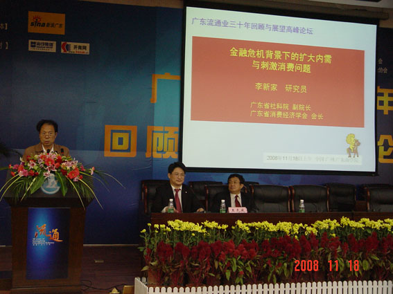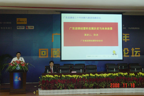 2008年11月18日,“广东流通业三十年回顾与展望高峰论坛”在广东商学院隆重举行。本次会议由广东省商业经济学会、广东商学院主办,广东商学院流通经济研究所和第一商业网承办,广东商学院工商管理学院等单位协办。来自广东省内各大百货、购物中心、超市及连锁品牌的公司总裁和商家代表及省内高校专家500余人出席了此次的盛会。共同见证了2008年广东商贸流通行业规模最大、规格最高的盛会,一起回首过往三十年广东流通业走过的艰辛历程,总结广东流通业三十年发展得失成败。