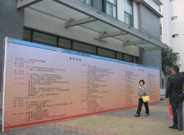 在广东商学院隆重举行。本次会议由广东省商业经济学会、广东商学院主办,广东商学院流通经济研究所和第一商业网承办,广东商学院工商管理学院等单位协办。来自广东省内各大百货、购物中心、超市及连锁品牌的公司总裁和商家代表及省内高校专家500余人出席了此次的盛会。共同见证了2008年广东商贸流通行业规模最大、规格最高的盛会,一起回首过往三十年广东流通业走过的艰辛历程,总结广东流通业三十年发展得失成败。