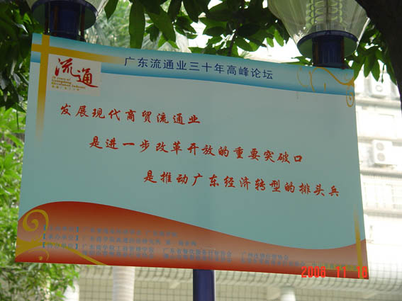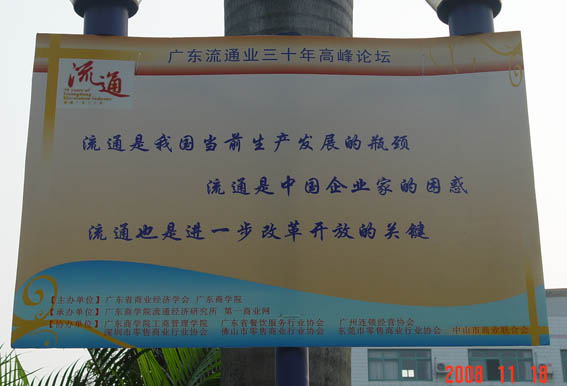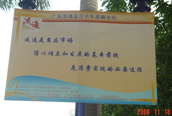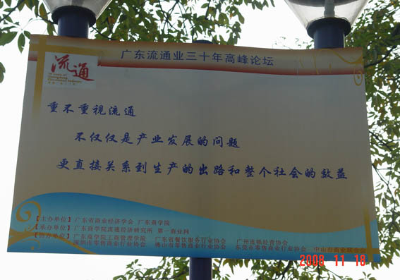 以下为会议当天悬挂在道路两旁的流通广告牌,成为当天又一道亮丽的风景。