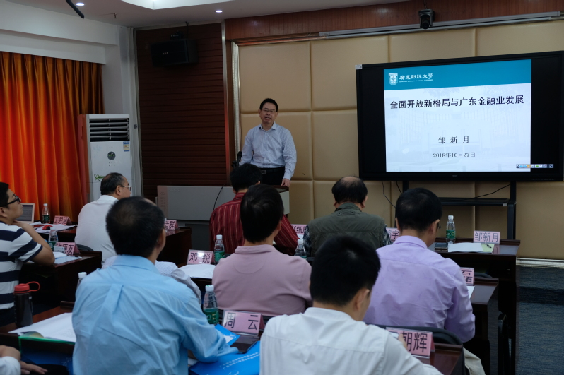 广东金融业开放新格局如何构建?邹新月教授认为,从国家层面来说,要实现金融双向开放创新;从广东层面来说,要依托粤港澳大湾区,以广东自贸区为突破口,构建与国际高标准对接的金融服务体系,引领金融开放和改革开放走在全国前列;从具体措施来说,要由思想、体制、机制、布局、平台、法治等方面入手,建设粤港澳大湾区金融中心。