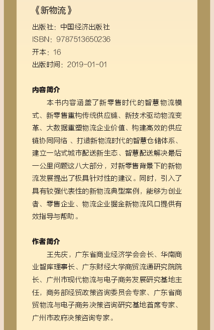 书名:《新物流》 作者:王先庆 出版社:中国经济出版社