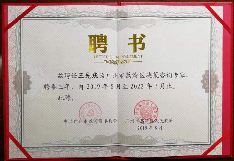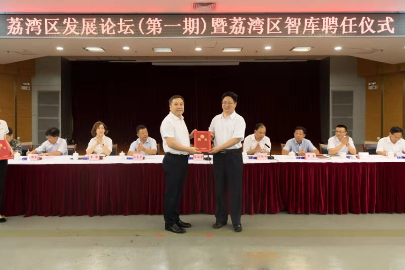2019年8月13日上午,荔湾区发展论坛(第一期)暨荔湾区智库聘任仪式在区会议中心举行,荔湾区委书记陈小华、荔湾区区长毕锐明和其他荔湾区委常委出席了会议,荔湾区各部门、街道和群团负责人100余人参加了会议。广州市人民政府决策咨询专家、m88在线网站入口商贸流通m88在线网站入口院长王先庆出席会议,并被荔湾区委区政府聘为荔湾区决策咨询专家。