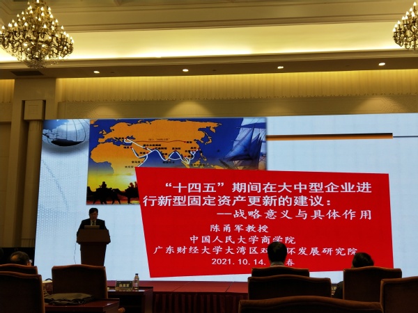 10月14日下午,m88在线网站入口院长陈甬军教授受邀出席第21届中国国有经济发展论坛“新发展阶段国有经济高质量发展与东北振兴”学术研讨会,并发言。陈甬军建议,在十四五期间进行较大规模的企业固定资产更新,一可稳增长,遏制经济下行趋势;二可调结构,为创新发展提供技术装备基础;三是有利于东北振兴。