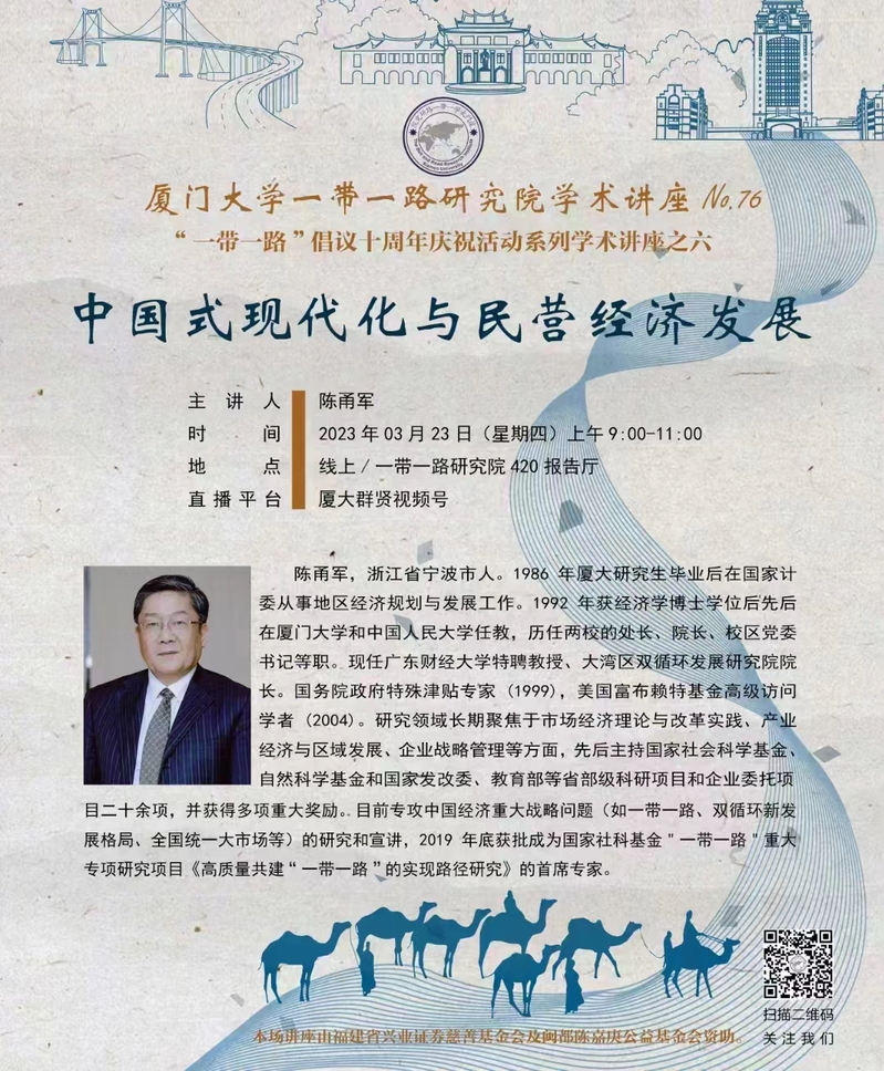 讲座预告:陈甬军:中国式现代化与民营经济发展(2023年3月23日上午)