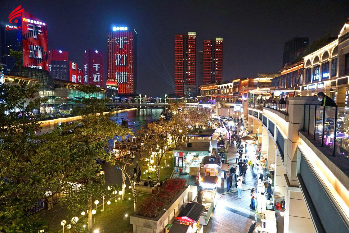 夜幕下,灯湖西街的市集里热闹非凡。珠江时报全媒体记者 梁棋清 摄(资料图)