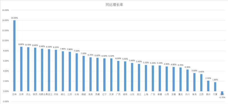 其中,增长率超过8%的7个省份分别是:吉林、甘肃、陕西、河北、黑龙江、内蒙古、河南,主要集中在中西部和东北地区。