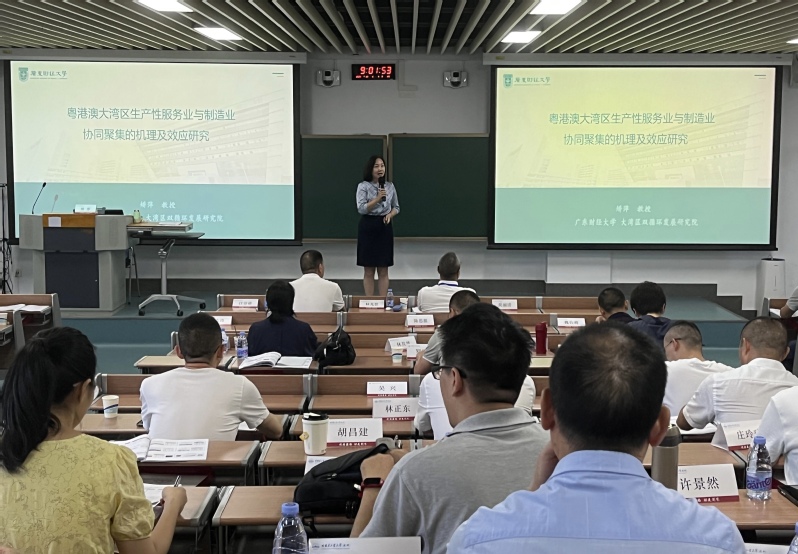 矫萍教授结合自己的研究心得,从“产业联动—制度匹配—空间联动”三个维度解读粤港澳大湾区生产性服务业与制造业协同聚集的现状,分析其机理与效应,学员们纷纷表示深受启发。