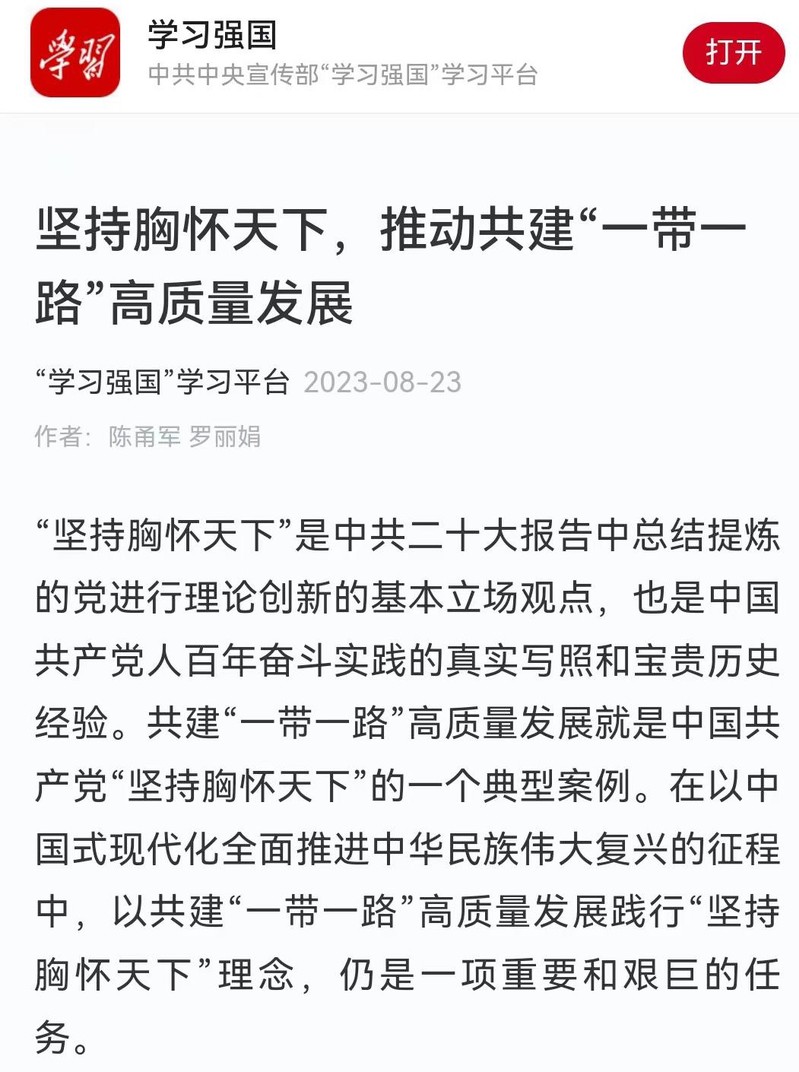 陈甬军教授纪念共建“一带一路”十周年首发论文被学习强国摘要发表