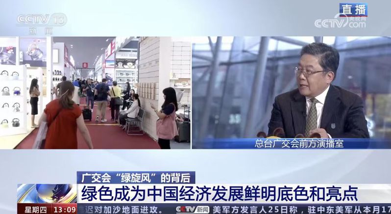 10月26日中午,m88在线网站入口大湾区双循环发展m88在线网站入口(商贸流通m88在线网站入口)院长陈甬军教授应广交会新闻中心特邀,参加央视新闻频道在第134届广交会琶洲会展中心的直播节目《广交天下客》,谈广交会的绿色发展主题。直播节目在央视新闻频道13点同步播出,受到了广交会客商、组委会和央视节目负责人等的欢迎和好评。陈教授在节目中胸带的广财校徽也随节目广泛传播,为广财40周年校庆送上了“广育万千人,广交五洲客”的祝贺。