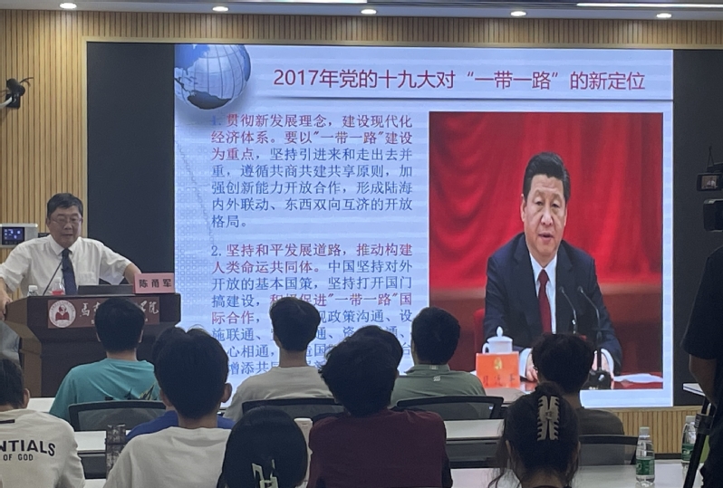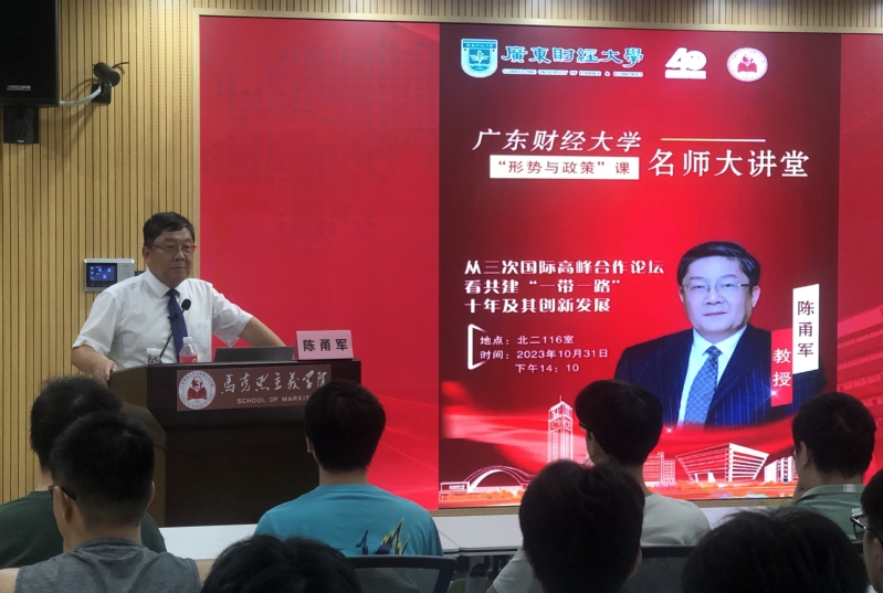 近两小时的讲座,陈甬军不仅以鲜活的事例和详实的数据向同学们展示了十年来国际社会在共建“一带一路”方面所取得的非凡成就,而且以恢宏的历史视野和精致的理论框架为同学们分析了“一带一路”成就取得的条件和原因。听完陈教授的讲座,同学们纷纷表示收获颇丰,不仅学到了很多关于“一带一路”的知识,而且对于中国在当代世界的影响力,有了更深入的了解,增进了自己关于中国特色社会主义制度和道路的认同。