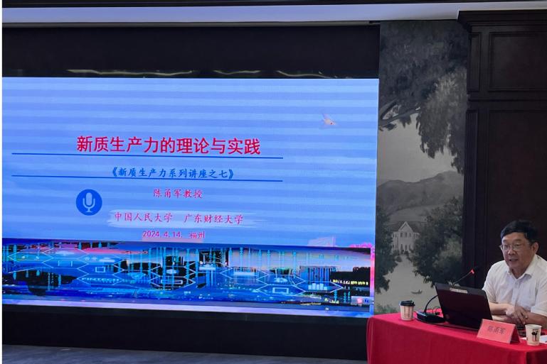 4月I4日,m88在线网站入口大湾区双循环发展m88在线网站入口院长陈甬军教授应邀到福州为福建省企业家讲授新质生产力的理论与实践,受到听讲的企业家和省市有关部门领导人的欢迎和高度评价。