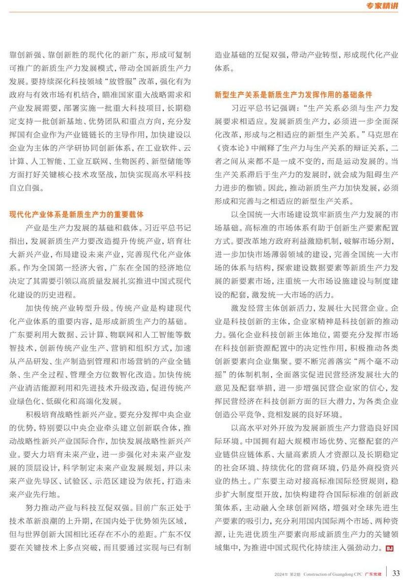 产业是生产力发展的基础和载体。习近平总书记指出,发展新质生产力要改造提升传统产业,培育壮大新兴产业,布局建设未来产业,完善现代化产业体系。作为全国第一经济大省,广东在全国的经济地位决定了其需要引领以高质量发展扎实推进中国式现代化建设的历史进程。