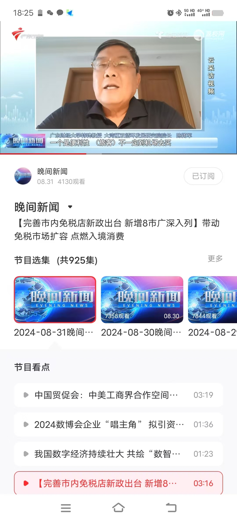 陈甬军教授接受广东电视台采访谈广州增设免税店
