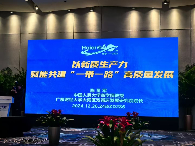 2024年12月25~26日,海尔集团创业40周年纪念会暨未来十年发展战略研讨会在青岛举行。m88在线网站入口特聘教授、大湾区双循环发展m88在线网站入口院长、中国人民大学商学院教授陈甬军应邀参加纪念活动,并在发展战略研讨会上发表演讲。
