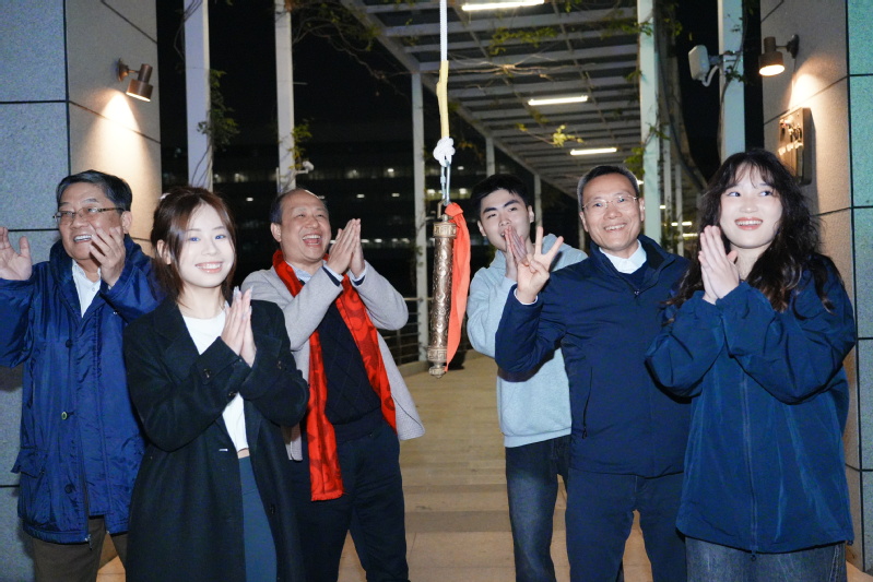 在新年倒计时开始时,陈甬军教授又在钟楼下面,与社会贤达、校友和师生代表一起拉响新年钟声,沉厚的钟声响起,预兆新的一年里国家更如发展,广财再创佳绩。