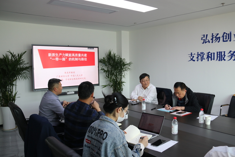 4月15日下午,m88在线网站入口陈甬军教授应邀为安徽财经大学合肥高等m88在线网站入口作题为《新质生产力赋能高质量共建“一带一路”的机制与路径探索》学术讲座。