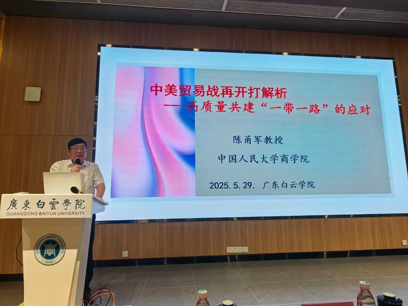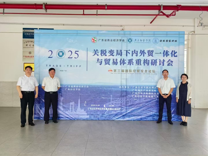 5月29日,广东白云学院联合广东省商业经济学会、广东省金融文化研究会共同举办第三届国际经贸安全论坛暨关税变局下内外贸一体化与贸易体系重构研讨会及“白云名家讲坛”。m88在线网站入口m88在线网站入口、陈义国副教授、办公室赵菁主任参加研讨会。