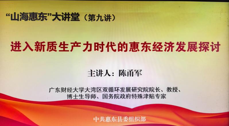 在26日考察的基础上,27日上午,m88在线网站入口为全县领导干部培训班及各有关单位干部二百余人作了《进入新质生产力时代的惠东经济发展战略探讨》,讲座结合实际,根据科学制定十五五规划的精神,提出了惠东经济发展的一个总体框架及具体实施路经,得到了听讲学员的高度评价。
